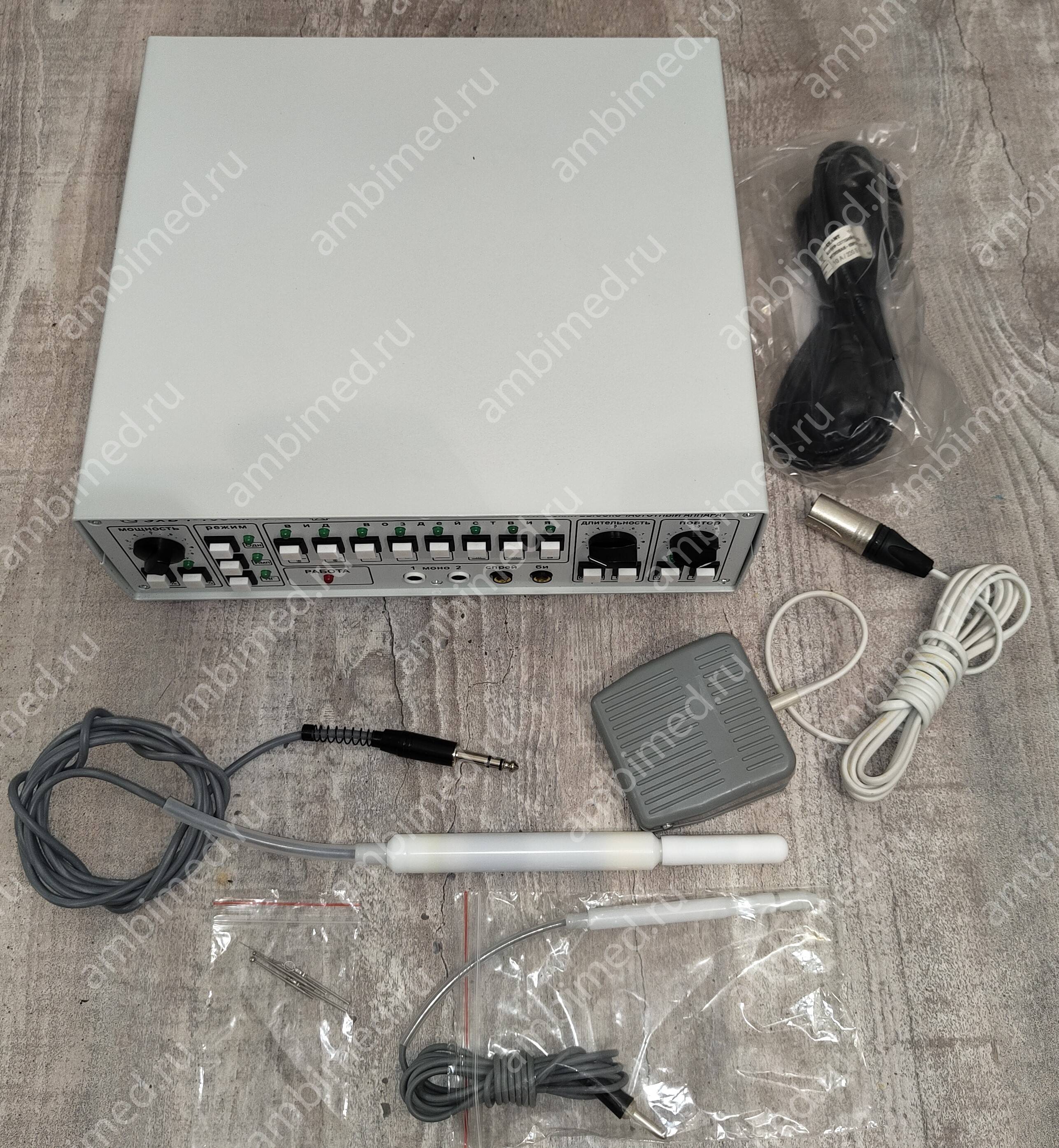 Широкий диапазон регулировок и входящие в комплект аппарата специальные устройства (пинцет и склерозатор) позволяют использовать его в различных областях медицины.