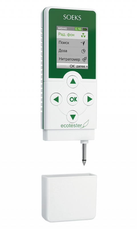 Экотестер модели 3 СОЭКС представляет собой комплексный измерительный прибор, сочетающий в себе функции дозиметра и нитрат-тестера. Благодаря таким возможностям прибора пользователь может с егь помощью определять как радиацию, содержащуюся в воздухе, так и уровень содержания нитратов в свежих фруктах и овощах.