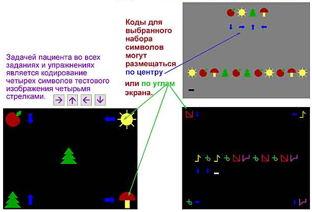 Лечебное действие программы основано на стимуляции интенсивной координированной деятельности зрительной и глазодвигательной систем.