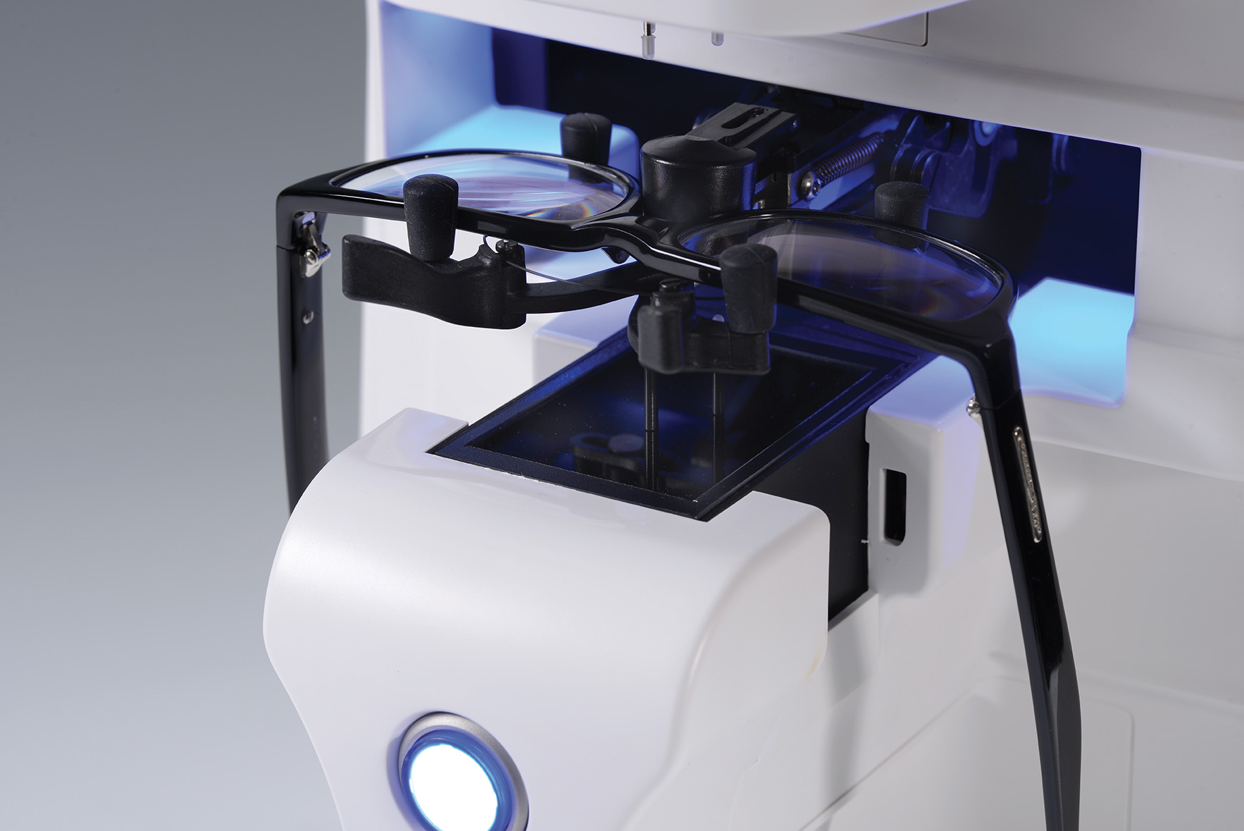 Уникальная система удерживания линзы позволяет производить быструю установку оправы при помощи всего одной руки! После нажатия кнопки измерения весь процесс будет выполнен автоматически.