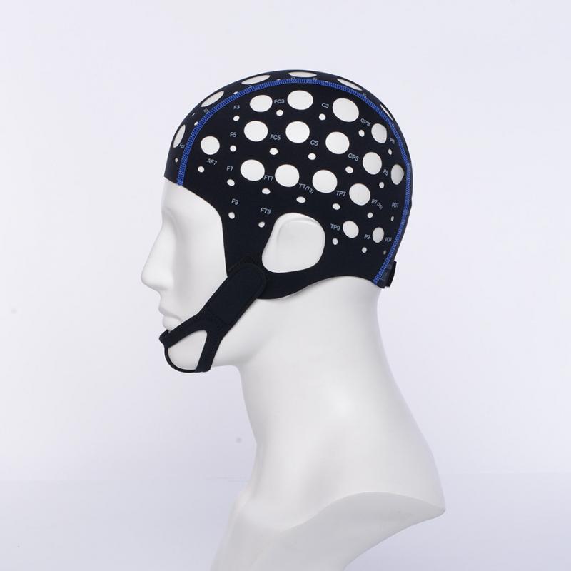 Текстильный шлем изготовлен из эластичного материала, сохраняющего форму и размер. Шлем обеспечивает точное положение электродов на голове без дополнительных измерений и регулировки. Большие отверстия предусмотрены для вентиляции и обеспечения доступа к электродам и коже пациента. Шлем фиксируется на голове с помощью подбородника или нагрудного ремня.Характеристики