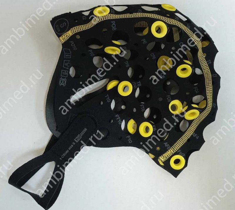 Маркированный текстильный шлем с предустановленными фиксирующими кольцами в соответствии с системой 10‑20.